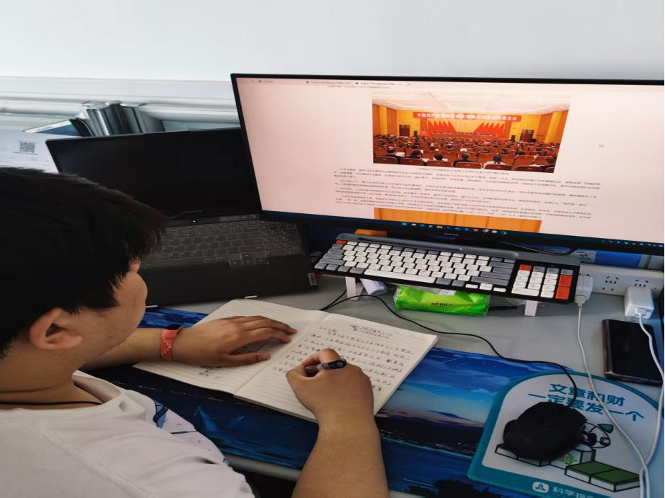 站在新的历史方位,我将始终牢记"请党放心,强国有我"的青春誓言,把党代会精神转化为勤学笃行的具体实践,把个人成长融入国家发展,以实际行动践行党员的初心与使命,在科技创新中勇攀高峰,在社会服务中践行初心,让青春在全面建设社会主义现代化国家的火热实践中绽放绚丽之花!