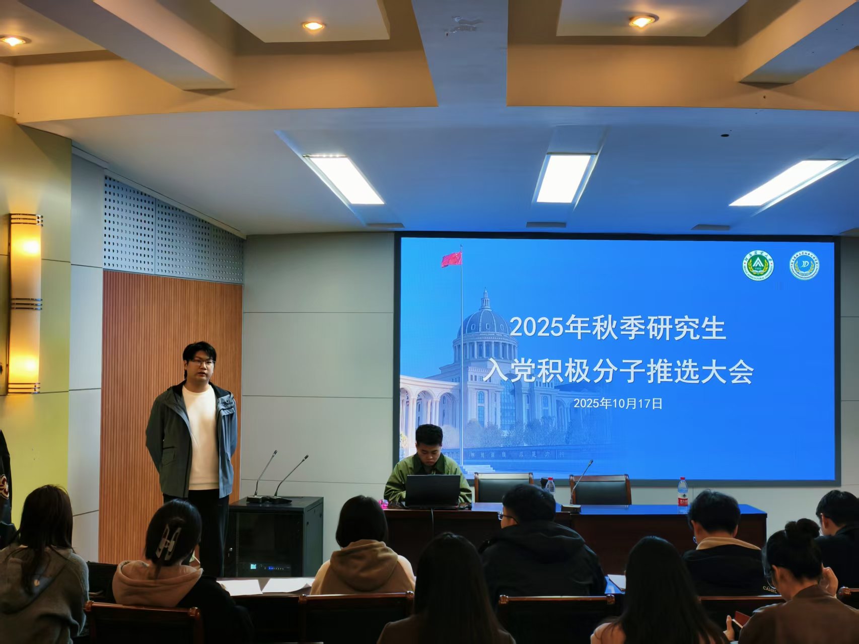 做好党员发展工作,让广大优秀团员加入党组织,是培养社会主义事业接班人,加强党的队伍建设,充实党的新生力量的需要。10月17日,黄网研究生2025级研究生流动团员团支部在文化路校区100人报告厅召开2025年秋季学期入党积极分子推优大会。会议由研究生第一党支部书记樊淘宁同志主持,研究生辅导员李锦、研究生各党支部支委和全体25级研究生参加会议。