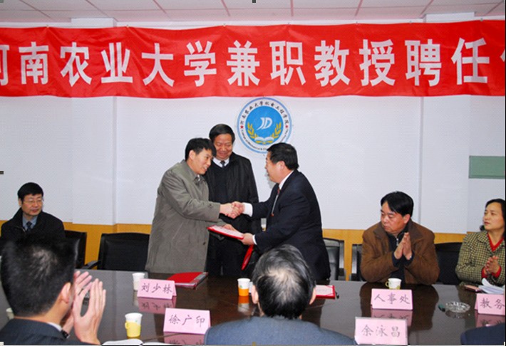 1月8日上午,河南豪丰机械制造有限公司董事长刘少林、郑州宇通客车股份有限公司副总经理王献成、王文兵受聘黄网农业工程学科兼职教授仪式在院会议室举行。副校长赵卫东出席,学校相关职能部门负责人、黄网领导班子和教师代表参加。会议由院长张全国教授主持。