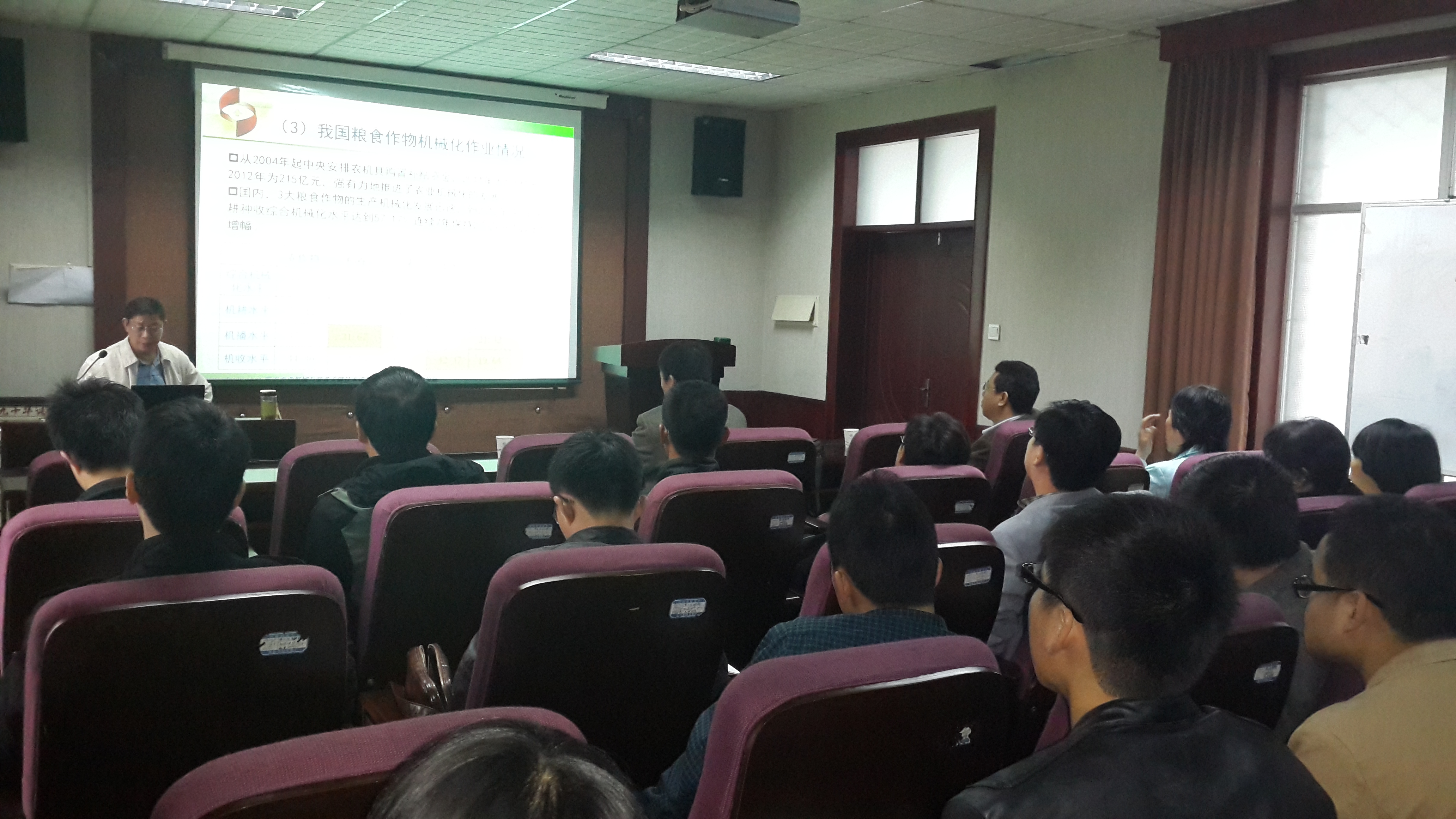 马教授以水稻产业技术发展为切入点,阐述了国内外水稻生产机械化技术发展,分析了我国水稻生产机械化发展中面临的机遇与挑战。马教授结合自己多年的研究成果,通过分析水稻生产中耕作、育秧、插秧、田间管理、收获等各机械化生产环节现状及存在的问题,指出我国目前水稻生产机械化技术的差距及研究热点。马教授还结合我省信阳地区水稻生产实际,分析了我省水稻生产机械化的发展前景,以及今后水稻生产机械研究的方向。