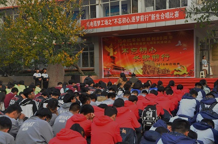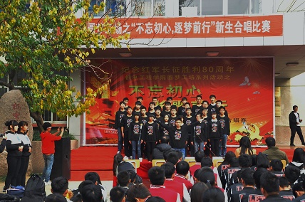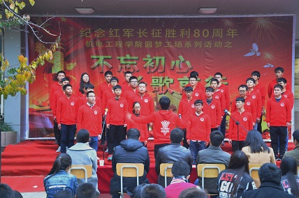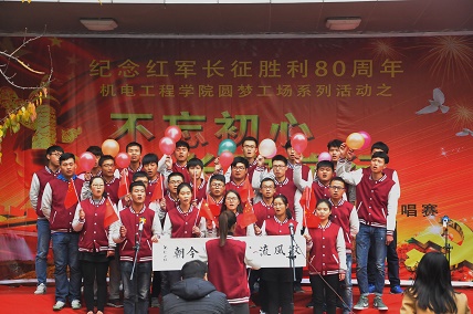 11月16日,黄网在院办楼前举办“纪念红军长征胜利八十周年——机电圆梦工场之‘不忘初心,逐梦前行’新生合唱比赛”,院党委副书记刘海涛,植保黄网