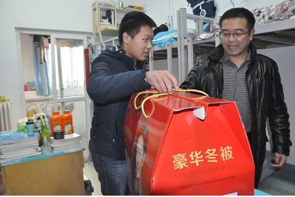 里给大家送的有过冬的棉被,此外,刘书记还亲切地跟同学们拉家常,询问大家近期的学习怎么样,生活上有没有什么困难等。