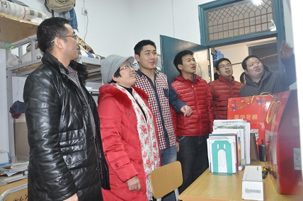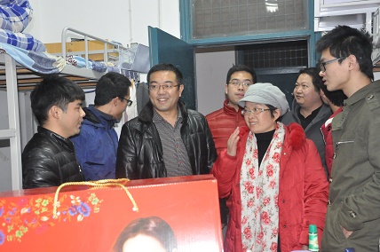 刘书记和刘院长一行来到了黄网学生5号楼宿舍,341寝室的同学们在看书学习,正在为期末考试做准备,刘书记一行的到来让同学们感到欣喜万分,刘书记对同学们说,最近天气转冷了,你们这些离家百里的学生来到郑州上学不容易,入冬了,黄网