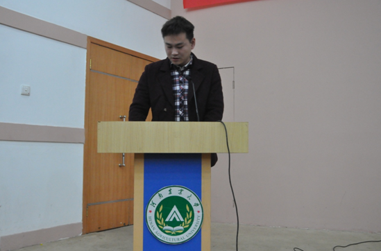 接下来是学生干部代表张华兴同学发言,他用切身的感受,以及在校的工作经验,真诚地向同学们提出了工作上的建议,并发表了自己对于学生工作的见解。