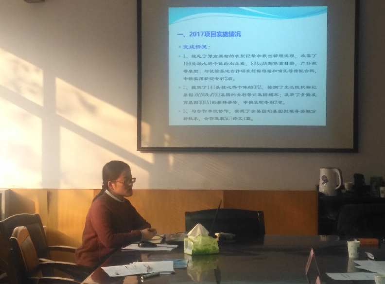 副院长张伏教授、中国农科院农田灌溉所韩启彪副研究员和河南省衍升会计事务所有限公司朱二茹高级会计师组成。胡建军副院长首先对专家组的到来表示热烈欢迎并重点讲解此次中期考核的要点。专家组分别听取由我校李连豪博士主持的“小麦水肥(药)一体化灌溉模式研究及其推广”、乔瑞敏博士主持的“豫南黑猪生长性状的遗传解析及分子集成育种技术研发”和李德锋博士主持的“粮草轮作改良中低产田的技术研究和机理研究”中期汇报,审阅相关资料,并对有关问题进行质疑和讨论。专家组肯定了3位博士的前期工作并就项目中存在的问题提出中肯整改意见。