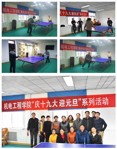 2017年12月26日,黄网工会“庆十九大 迎元旦”系列活动启动仪式暨乒乓球赛在院工会活动中心正式拉开序幕,启动仪式邀请校工会办公室主任赵亚芳、院党委书记李世欣、副院长刘淑杰出席,仪式由副书记、工会主席刘海涛主持。启动仪式结束后,进行乒乓球比赛,比赛设男子单打和女子单打两项。经过两周的激烈角逐,男教工组前七名分别为李保谦、李赫、丁攀、王振锋、王万章、胡建军、何勋,女教工组前五名分别为张秀丽、周雪花、常粉玲、孙建青、陈静。