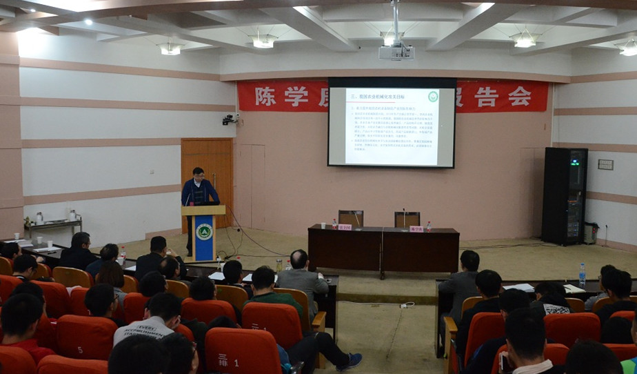 和生物质能源河南省协同创新中心邀请,在学校大礼堂三百人报告厅作题为“科技创新-全面提升我国农业机械装备研究制造与应用水平”的学术报告。报告会由副校长张全国主持,黄网