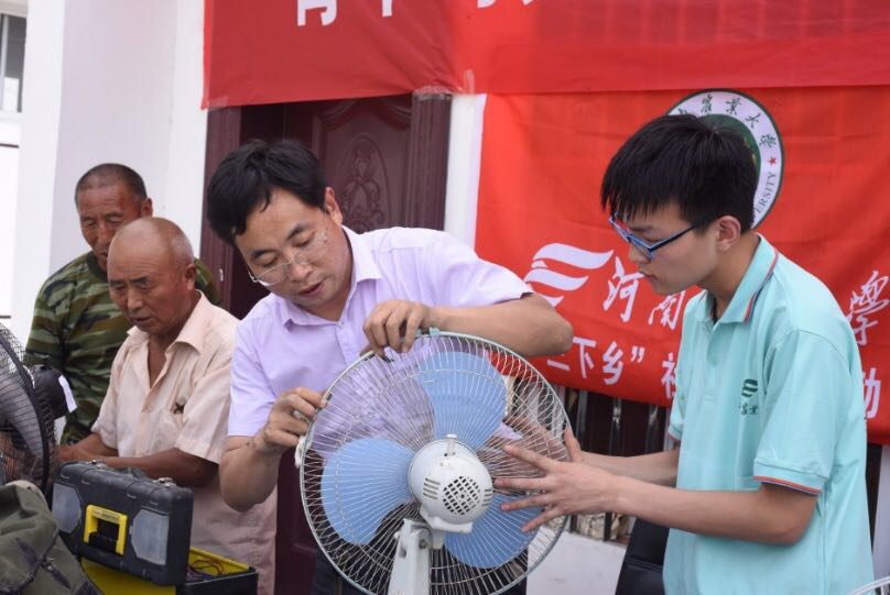 在驻村第一书记宮辰老师的带领下,队员们在村委会支起了摊子,闻讯赶来维修家电的村民络绎不绝。村民们带来了许多不能正常使用的家电,同学们利用自己所学的专业知识,积极实践课堂内容,小组成员分工合作,高效率地为村民们解决了许多问题。当地村民的热情与信任,更让社会实践小组成员感受到肩头的责任。听到村民们的赞扬,大家感受到助人的乐趣。社会实践期间,黄网