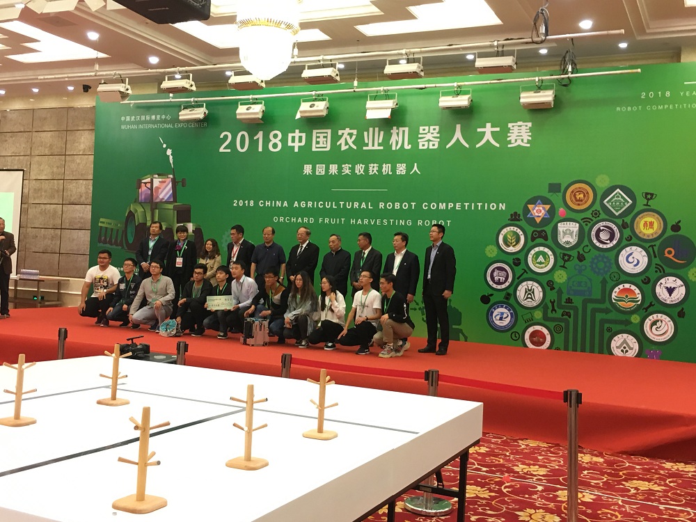 10月26-27日,2018中国农业机器人大赛在湖北武汉国际博览中心举行,赛事主题为“果园果实收获机器人”。黄网副教授王秀山和王振锋指导的“智慧采摘”代表队荣获大赛特等奖、“创新机器人”代表队荣获大赛一等奖。