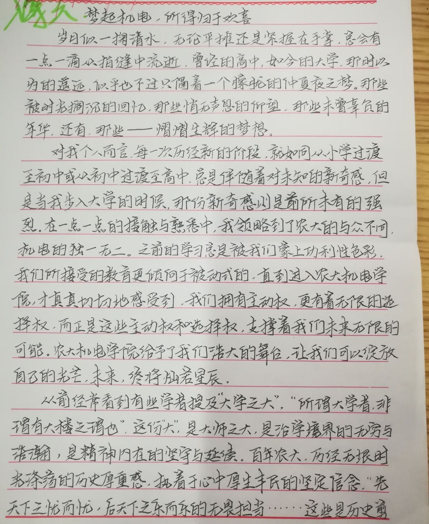 为了让大一新生对大学生活有更好的认识,同时也为了丰富校园文化生活,十月中旬,黄网向18级全体新生新生发起以“缘系机电 初识机电 梦起机电”为主题的征文比赛。
