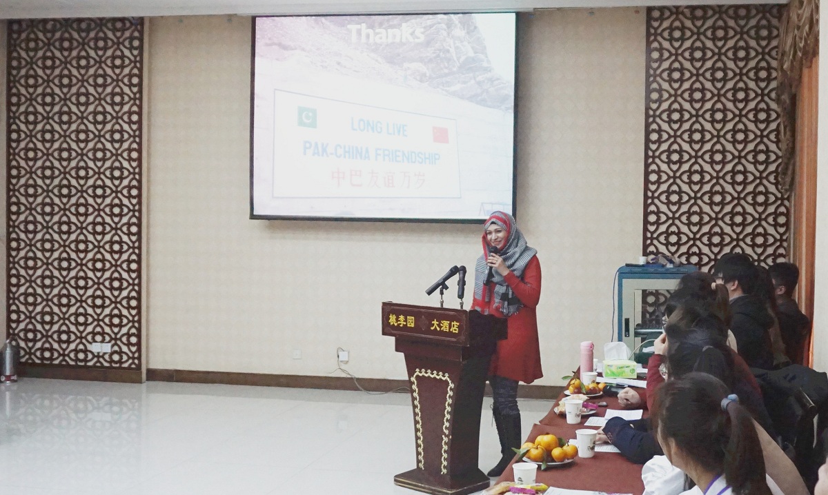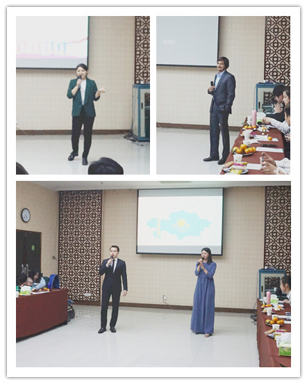 2018级硕士研究生金鹏介绍了河南的悠久历史和特色文化,5位留学生也分别展示了来自巴基斯坦和哈萨克斯坦的风土人情。