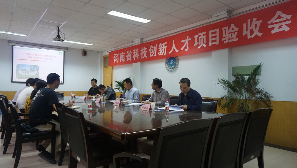 生物研究所刘德海研究员组成。会议由河南省科技厅人才开发处处长高松洁主持。校科技处副处长田志强、项目组成员参加了验收会。