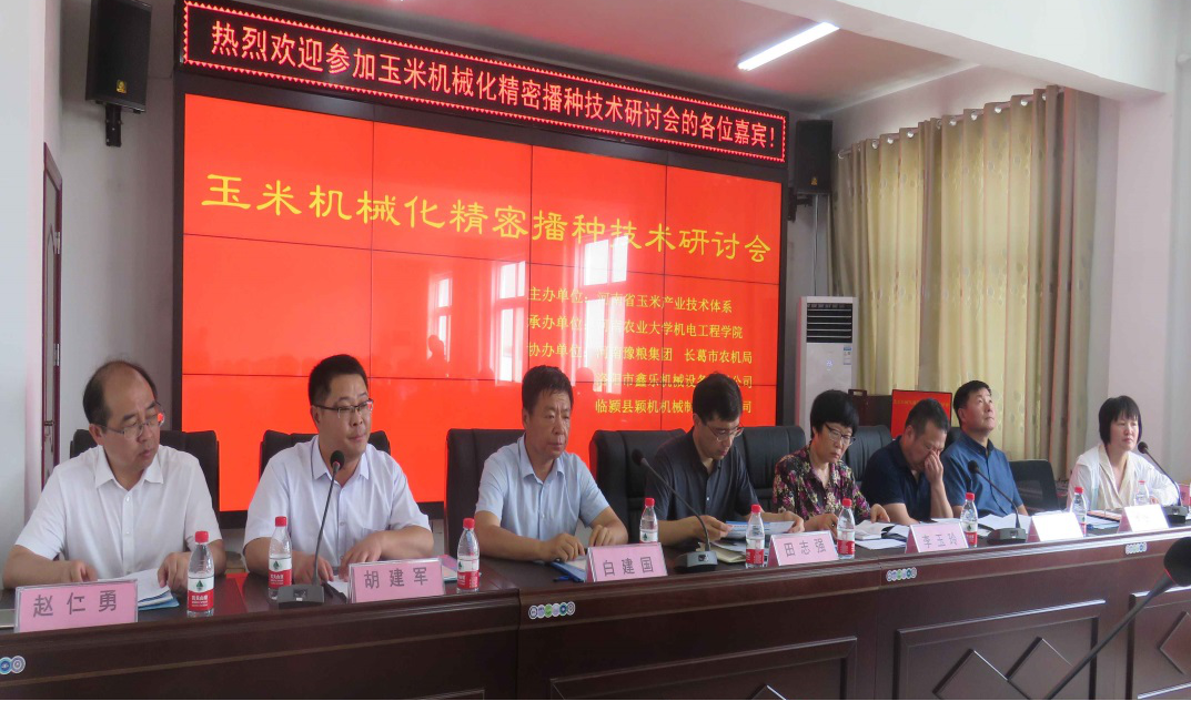 承办,河南省豫粮集团、长葛市农机局、洛阳鑫乐机械设备有限公司、临颍县颖机机械制造有限公司协办的玉米机械化精密播种技术观摩暨研讨会在河南省长葛市召开。校科技处副处长田志强、黄网