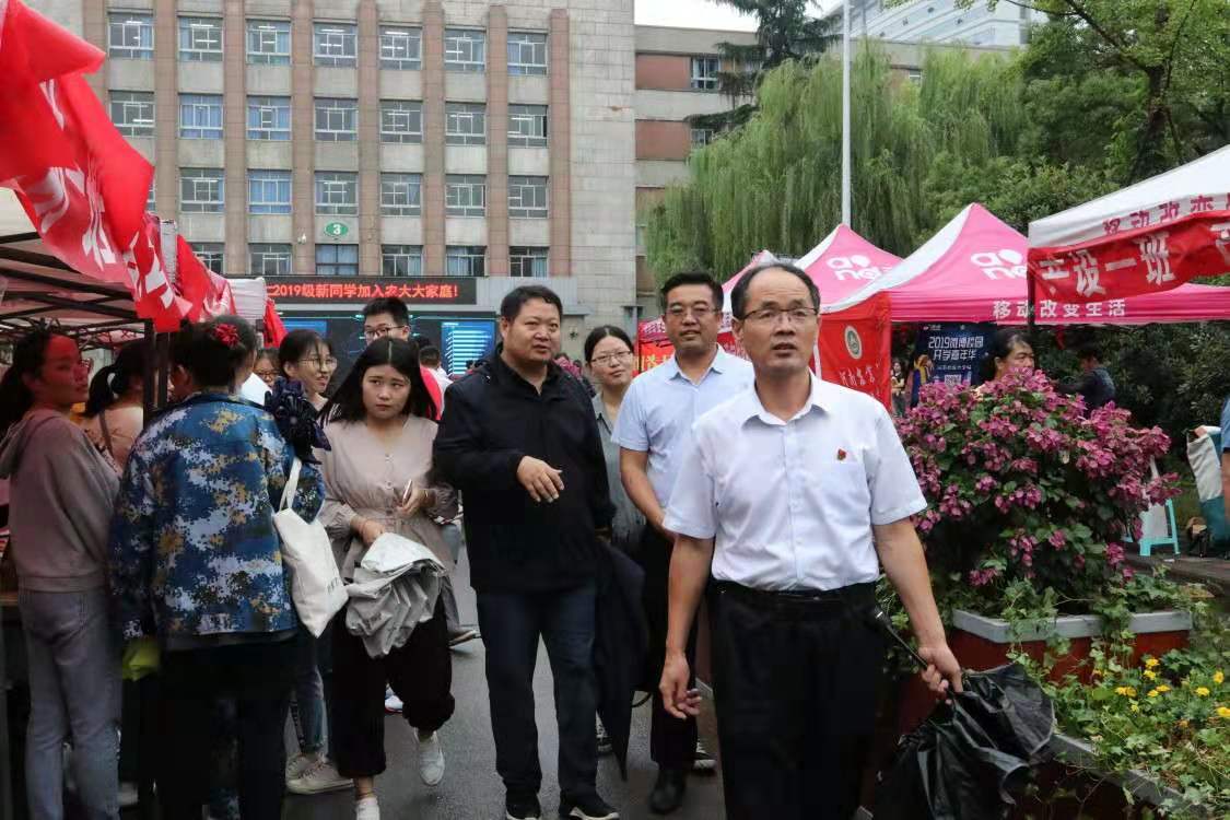 院党委书记李世欣、党委副书记刘海涛、团委书记王辉、团委老师徐捧丽来到迎新现场,认真观看了新生报道流程,对新生助理班主任和志愿者们的辛勤工作和热情态度表示充分的肯定,认真倾听新生及新生家长的意见,向他们介绍学校的各方面,减少新生及家长们初来学校时的困惑,让新生感受到了学校及黄网
