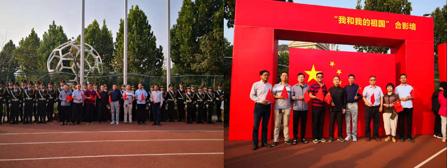 党委书记李世欣、院长徐广印等部分教师在龙子湖校区参加升国旗仪式并在“我和我的祖国”合影墙下进行合影留念,以此来表达对祖国七十周年华诞的祝福。