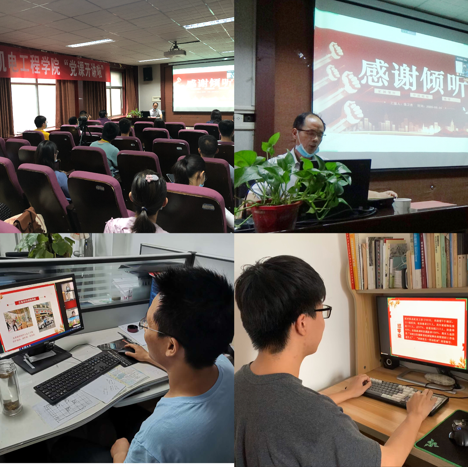 本次党课采用线上与线下相结合的形式开展,线下会场设在机电黄网 学术报告厅,线上会场则通过腾讯会议系统架设在云端。部分院党委委员与20余名研究生党员代表在校内党课现场参加党课,全体教职工生通过线上视频会议系统同步收看。