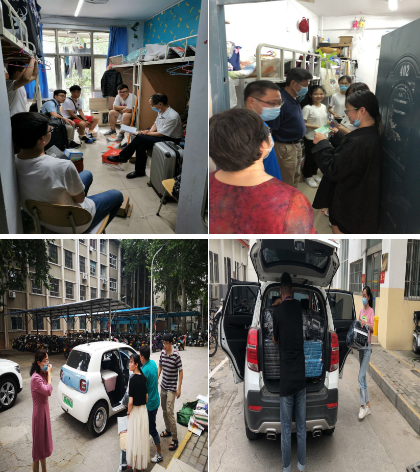 领导、各系主任及专业课老师们走进学生宿舍,同返校毕业生亲切交流,关心他们的考研及就业情况,并为他们送上美好的毕业祝福。同时在毕业生搬运邮寄行李过程中,毕业生班主任老师们和党员志愿者们纷纷用爱心推运车和私家车,热情帮助学生搬运物品,他们在楼梯上上下下,在宿舍、走廊来回穿梭,虽大汗淋漓却乐得其中,展现浓浓师生情谊。此次毕业生返校工作为黄网首批返校毕业生的大学生活画上了圆满句号,希望毕业生们在新的征程中继续开拓创新、砥砺奋斗、务实进取,发扬机电精神,开创人生新篇章。