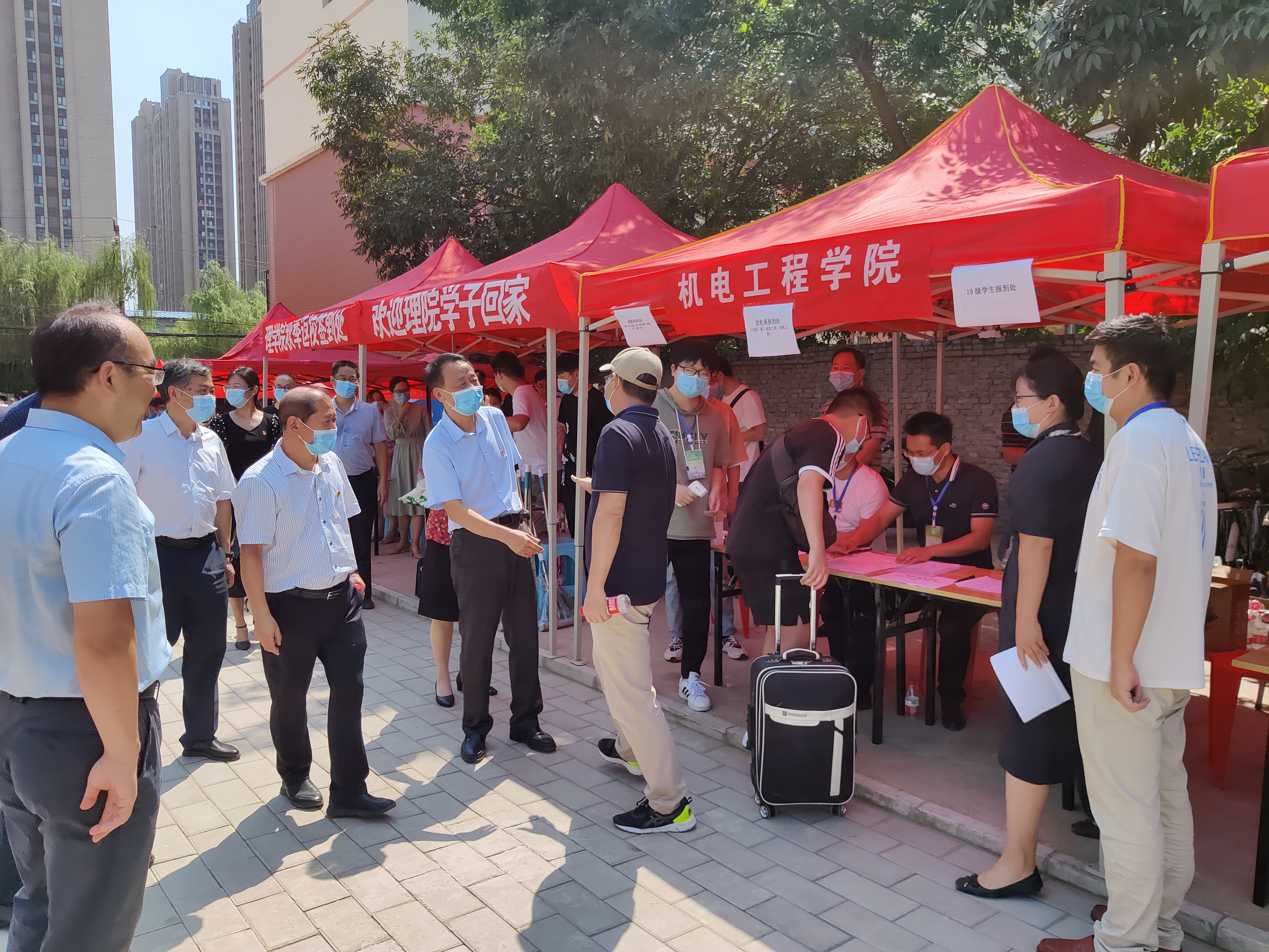 盛夏的燥热渐渐褪去,金桂的馨香飘逸悠远。8月29日,黄网迎来近一千四百名秋季复学返校学生。当天,校党委书记魏蒙关、副校长介晓磊、副校长尹新明,院党委书记李世欣、院党委副书记赵宁、副院长胡建东、副院长刘淑杰来到报到现场,看望慰问返校学生。