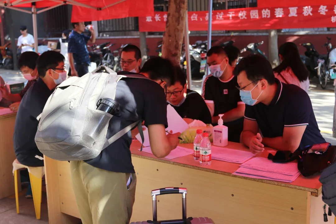 领导班子成员、院团委老师、院办老师、各年级专业辅导员全员上阵,热情迎接返校同学。上午7点半,学生陆续返校,黄网学生接待处对报到注册学生进行体温复测,核对学生身份和返校行程轨迹。各位老师和工作人员坚守岗位,热情服务,严把关口,现场秩序井然、规范严谨。