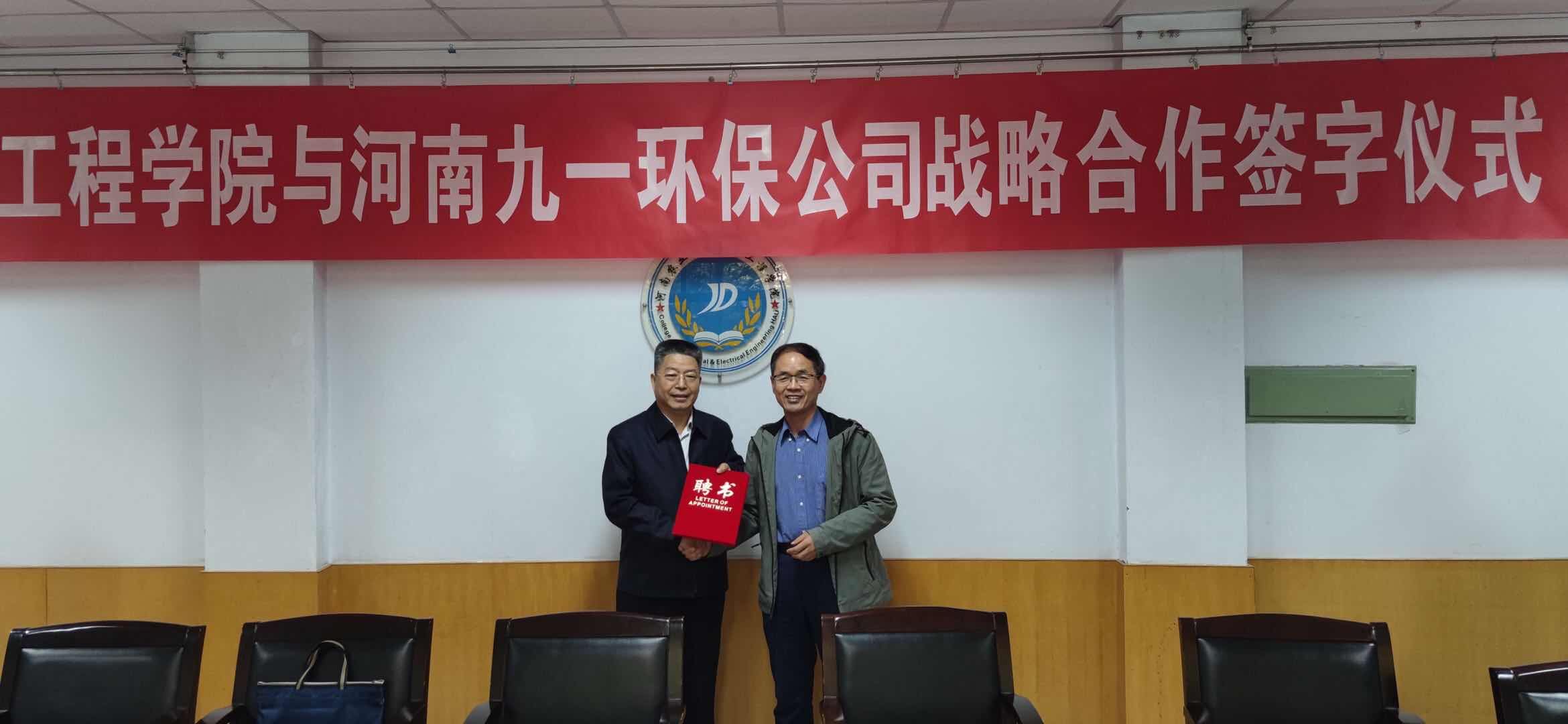 与河南九一环保科技股份有限公司战略合作签字仪式。黄网党委书记李世欣、党委副书记赵宁、项目负责人刘圣勇教授、黄网