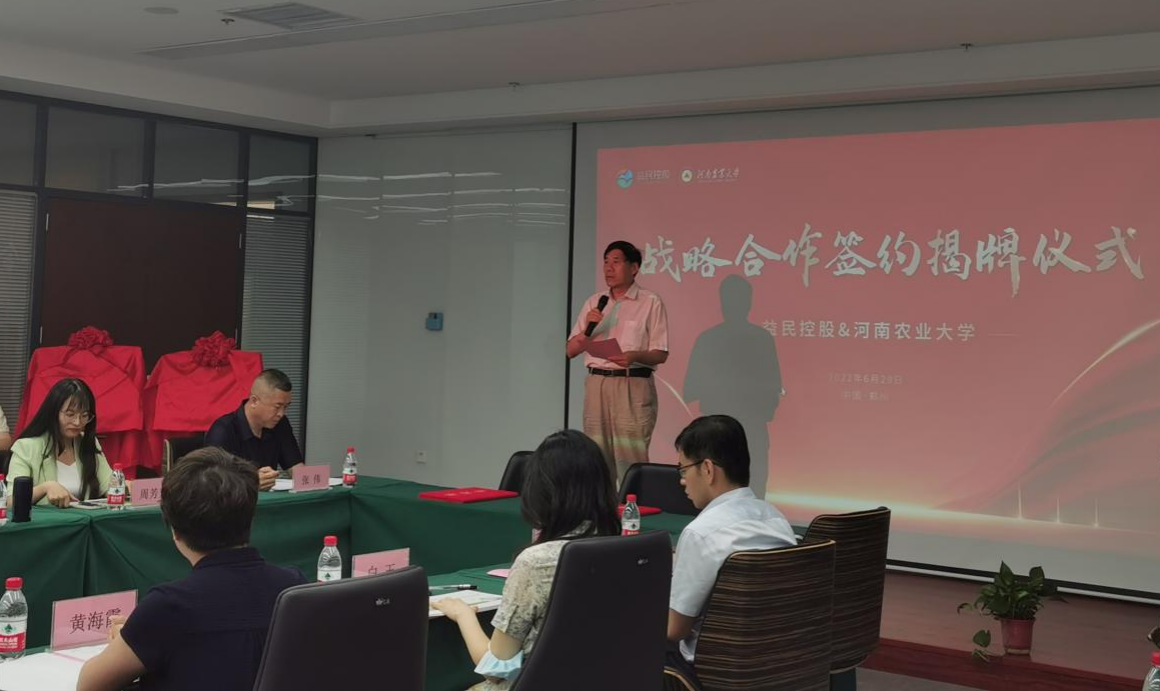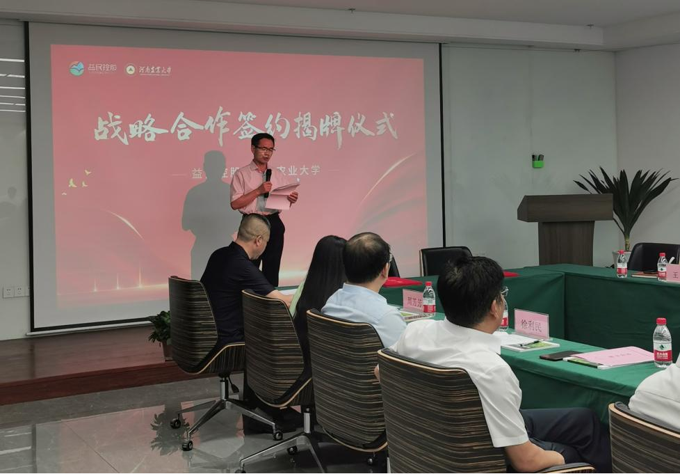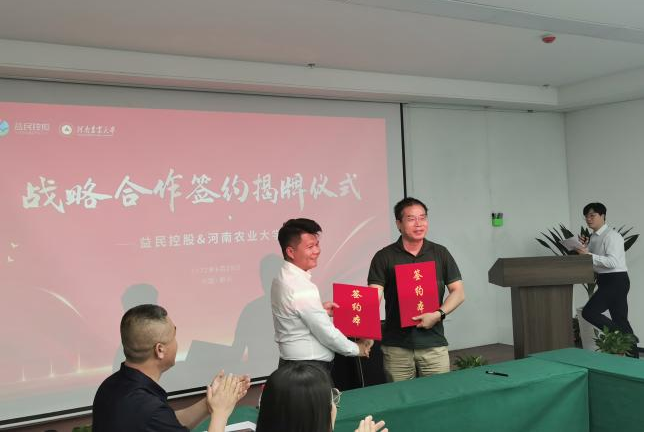 益民农业传感器研发中心”揭牌,社会服务处处长贺德先与河南益民控股有限责任公司董事长王诺飞为“黄网