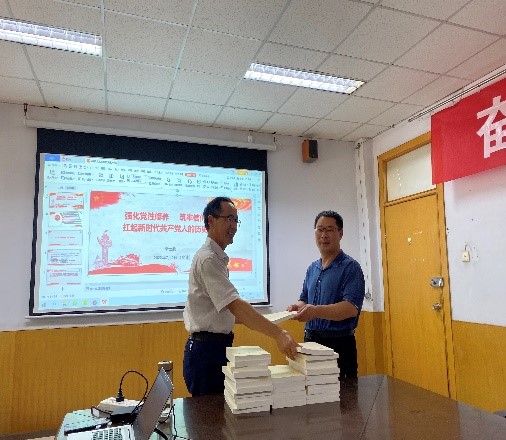 首先,院党委书记李世欣向教工党支部赠送中共中央党史和文献研究院编辑的习近平同志《论“三农”工作》书籍。全体党员满怀深情地合唱红色经典歌曲《没有共产党就没有新中国》,大家把对党和祖国的热爱,都融进到铿锵有力的歌声中,用歌声体现党员的初心使命。接着,由李世欣带领全体成员重温入党誓词。大家高举右手,庄严宣誓,铿锵有力的誓词,震撼着在场每一位党员,让大家重温了自己加入中国共产党时的庄严承诺,提醒着党员干部要不忘初心、奋勇争先。大家纷纷表示,通过重温入党誓词,再一次体会到了作为一名共产党员的责任感和使命感,在今后的工作中一定以昂扬的士气、进取的心态和创先争优的精神践行入党誓词。