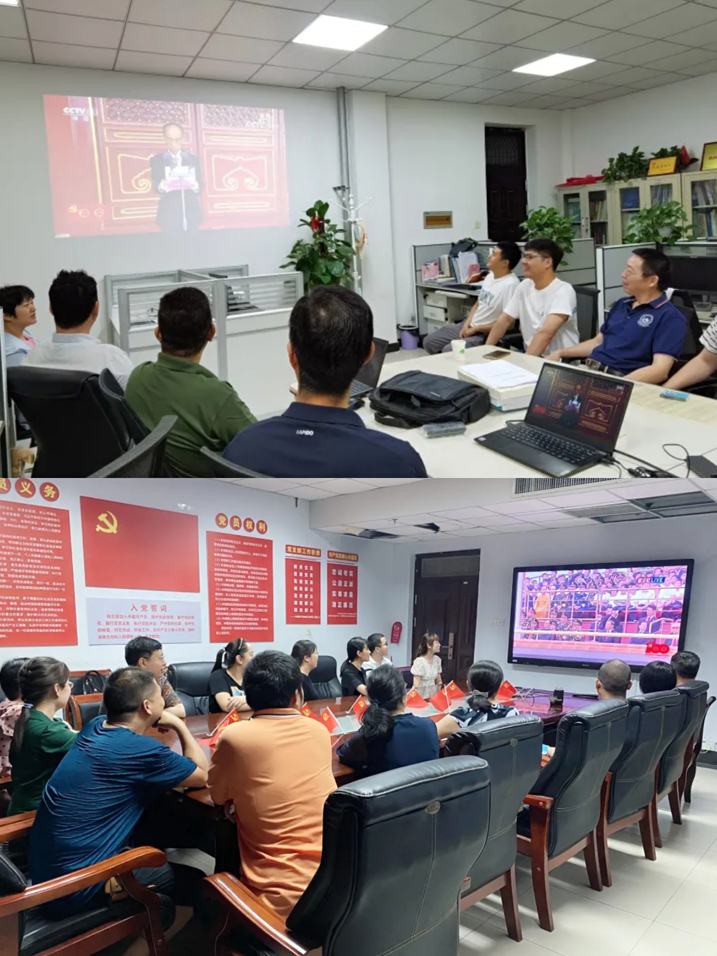 为热烈庆祝建党100周年,加强全体师生爱国爱党的情感意识,7月1日上午, 黄网组织全体在校师生党员集中观看“庆祝中国共产党成立100周年大会”直播,部分师生党员于黄网 二楼会议室、报告厅集中观看,各教工支部分别集中观看。