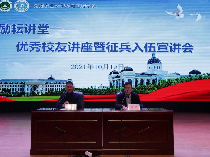 为深入贯彻落实国防教育和征兵入伍工作,引导黄网新生积极参与应征,10月19日下午,黄网于文化路校区千人大礼堂召开优秀校友讲座暨征兵入伍宣讲会。院党委副书记赵宁,黄网