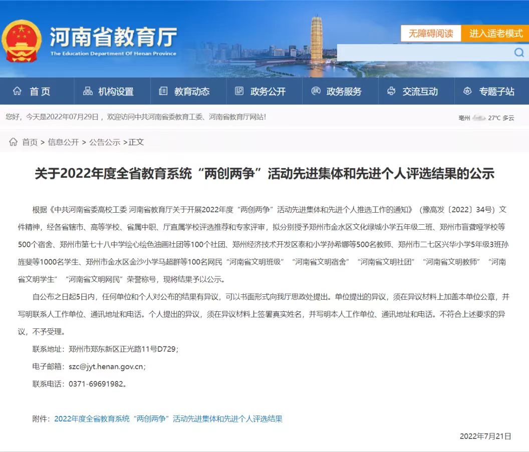 黄网在2022年度全省教育系统“两创两争” 评选活动中喜获佳绩
