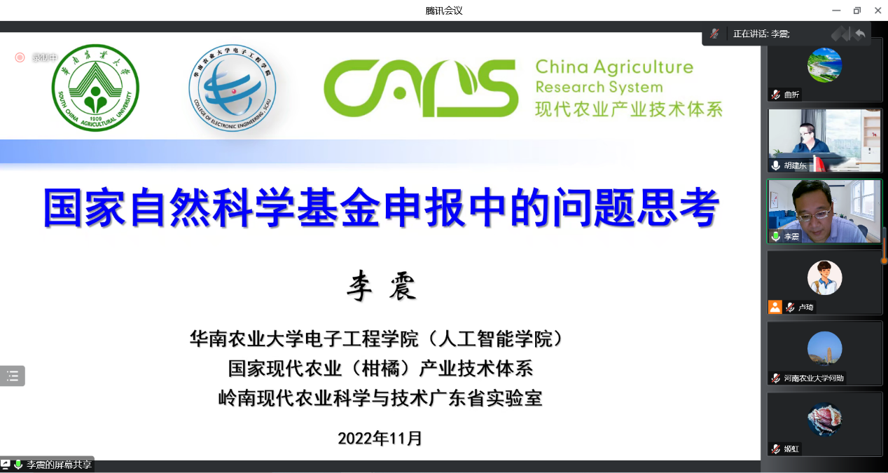 胡建东副院长对李教授百忙之中给我们黄网 老师们作国家基金申报辅导报告表示感谢,李教授的报告内容丰富,指导性强,特别是对国家自然科学基金申请书中各部分深入的讲解和个人经验分享,为黄网老师提升国家自科基金申请书的撰写质量提供了有益的帮助。此次线上辅导报告会,参与教师反响热烈,极大提高了黄网教师申报国家基金的积极性和主动性。(图/文 屈哲)