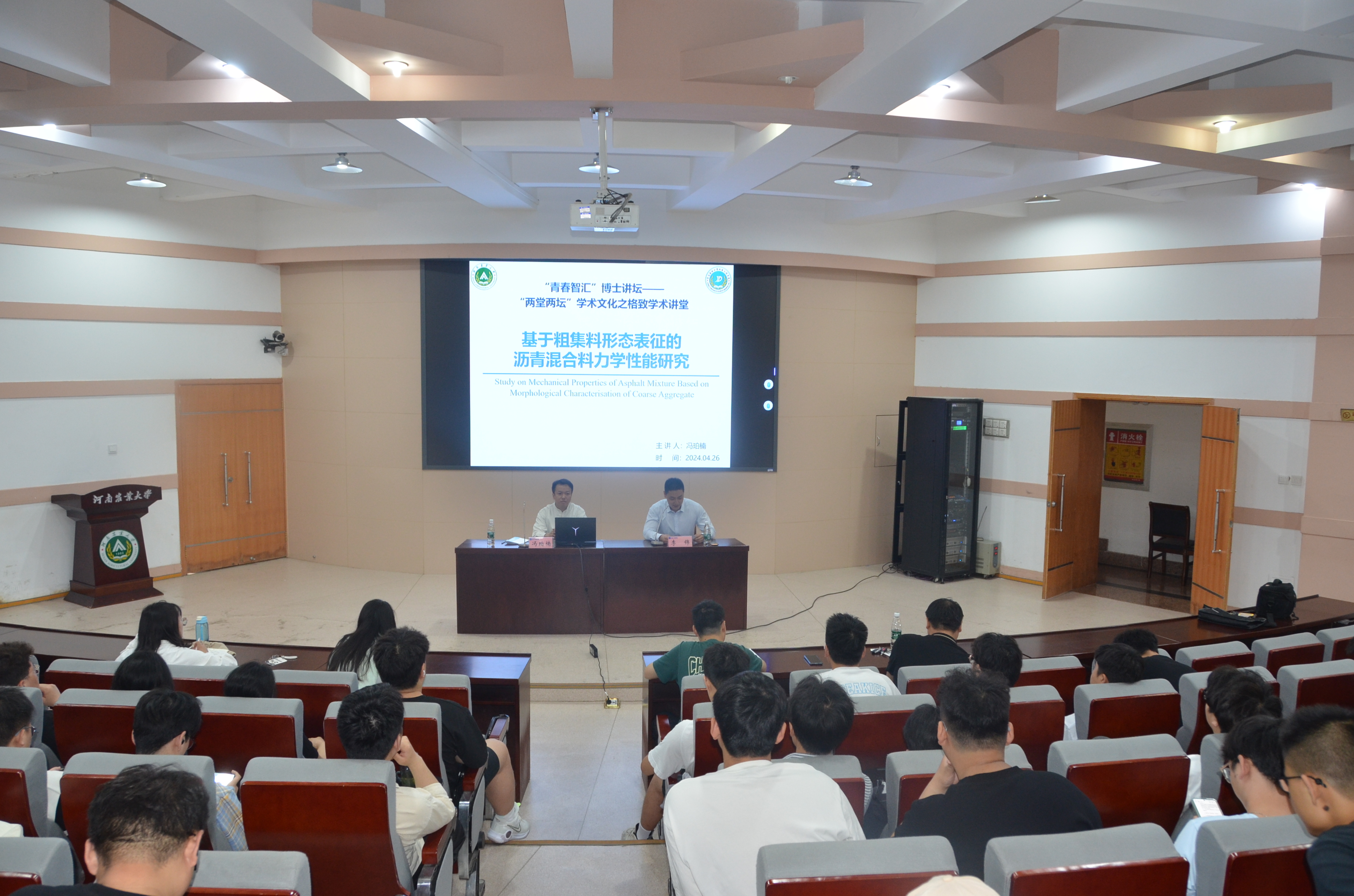 冯珀楠为研究生作主题为“基于粗集料细微观形态表征的沥青混合料力学特性研究”的学术报告,他针对路用粗集料形态表征方法研究、基于集料形态的沥青混合料界面性能研究和沥青混合料界面作用行为分子模拟研究三个方面对当前研究内容作报告。在科研经验方面,冯珀楠分享了他在科研和学习中的思考和感悟,就如何在有限时间内得到更好的成果向同学们传授相关经验,并从专业角度解答了同学们将来读博和工作选择方面的问题。最后,李锦对本次讲坛进行总结,号召同学们学习冯老师的科研精神,勉励同学们遇到困难不要气馁,顺利研磨出自己的优质论文,永不言败方能成就无悔青春。