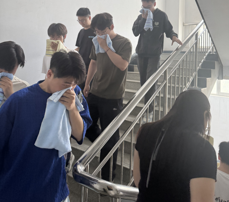 演练前,各系提前组织师生学习灭火器使用、逃生技巧,强调湿毛巾掩鼻、低姿撤离等消防知识培训。
