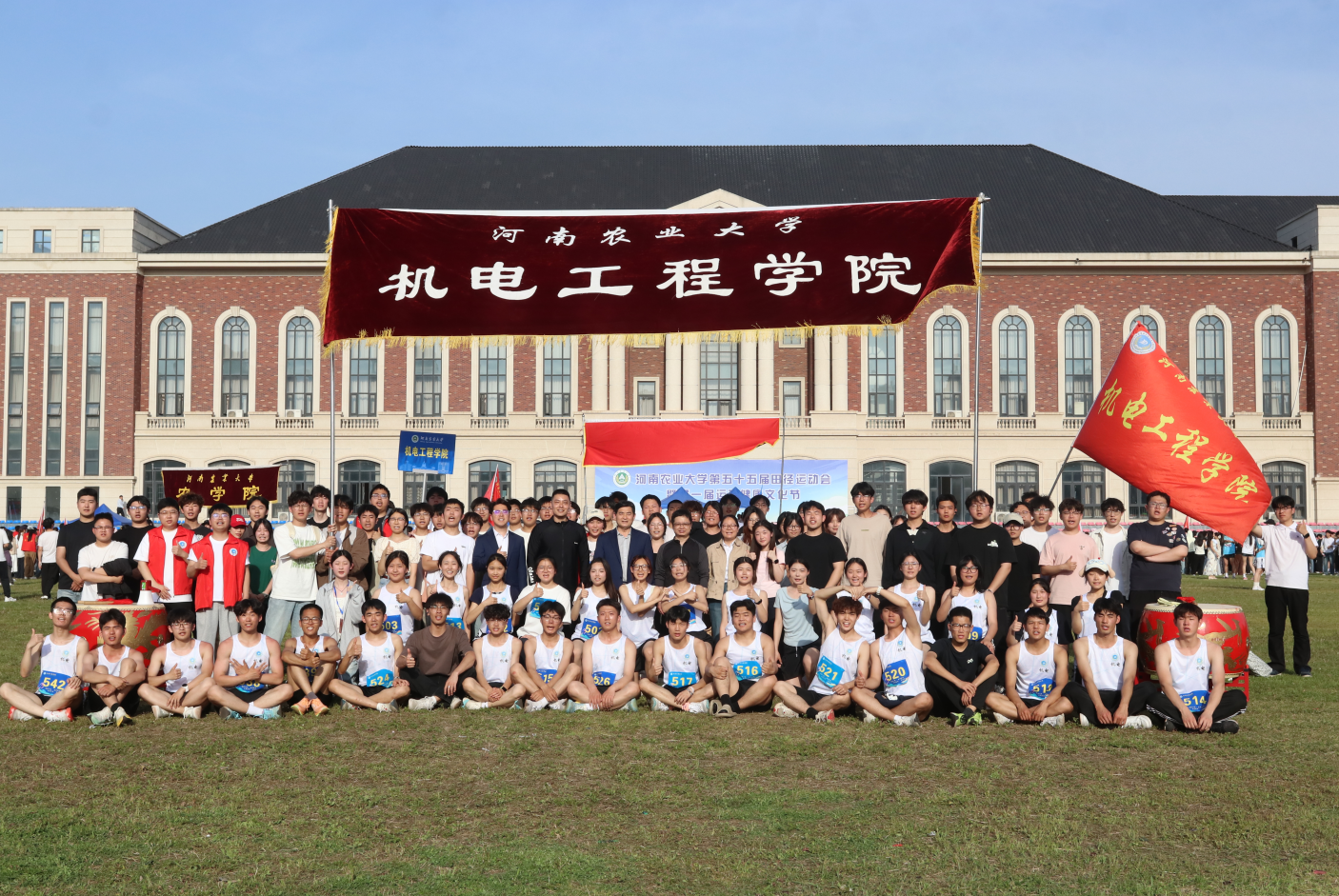 教职工方阵亮相,老师们迈着坚定整齐的步伐入场,身姿挺拔、精神饱满,彰显着教育工作者昂扬向上的风貌。“团结一致,奋力拼搏,爱我机电,共创辉煌!”的院训口号响彻云霄,色彩鲜明的院旗与横幅迎风招展,呐喊声与欢呼声交织在一起,不仅彰显了机电学院凝心聚力、奋勇争先的精神风貌,更展现了机电学子以科创赋能农业、以实干践行担当的青春风采。