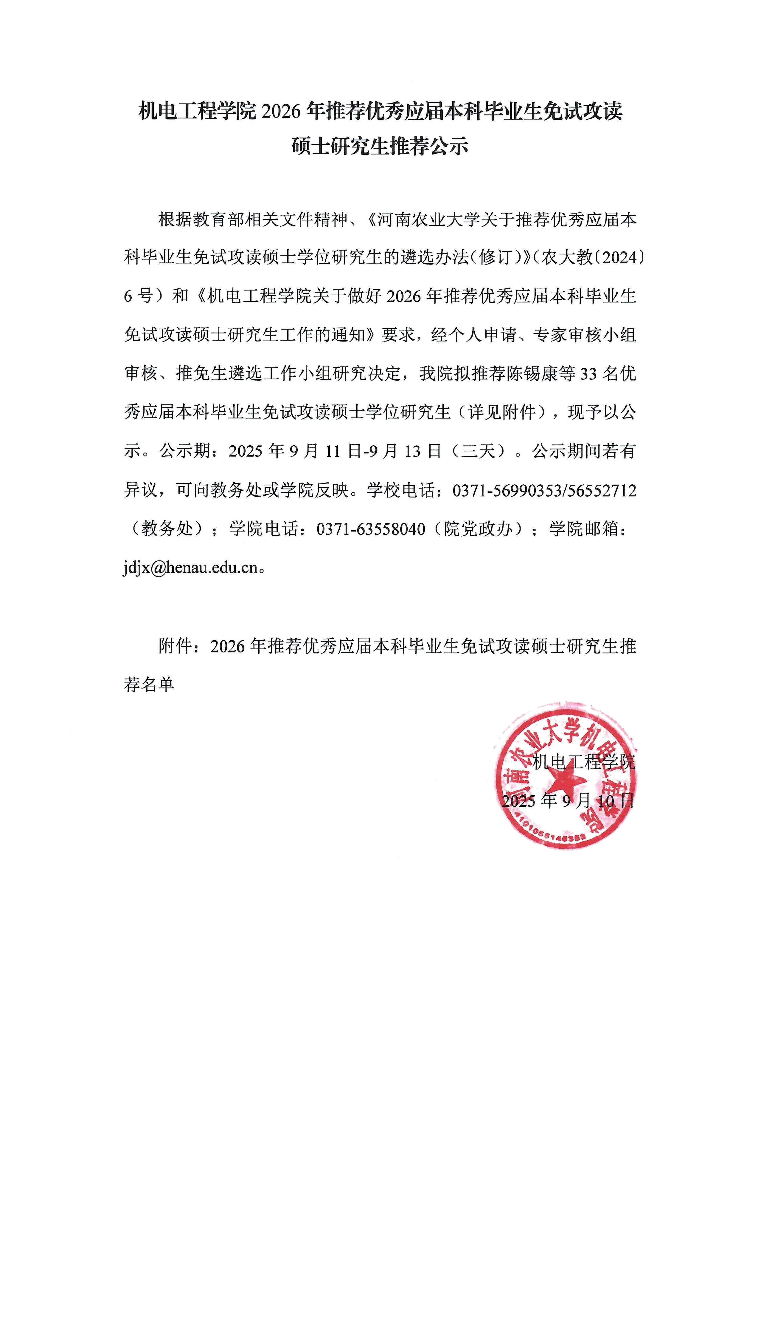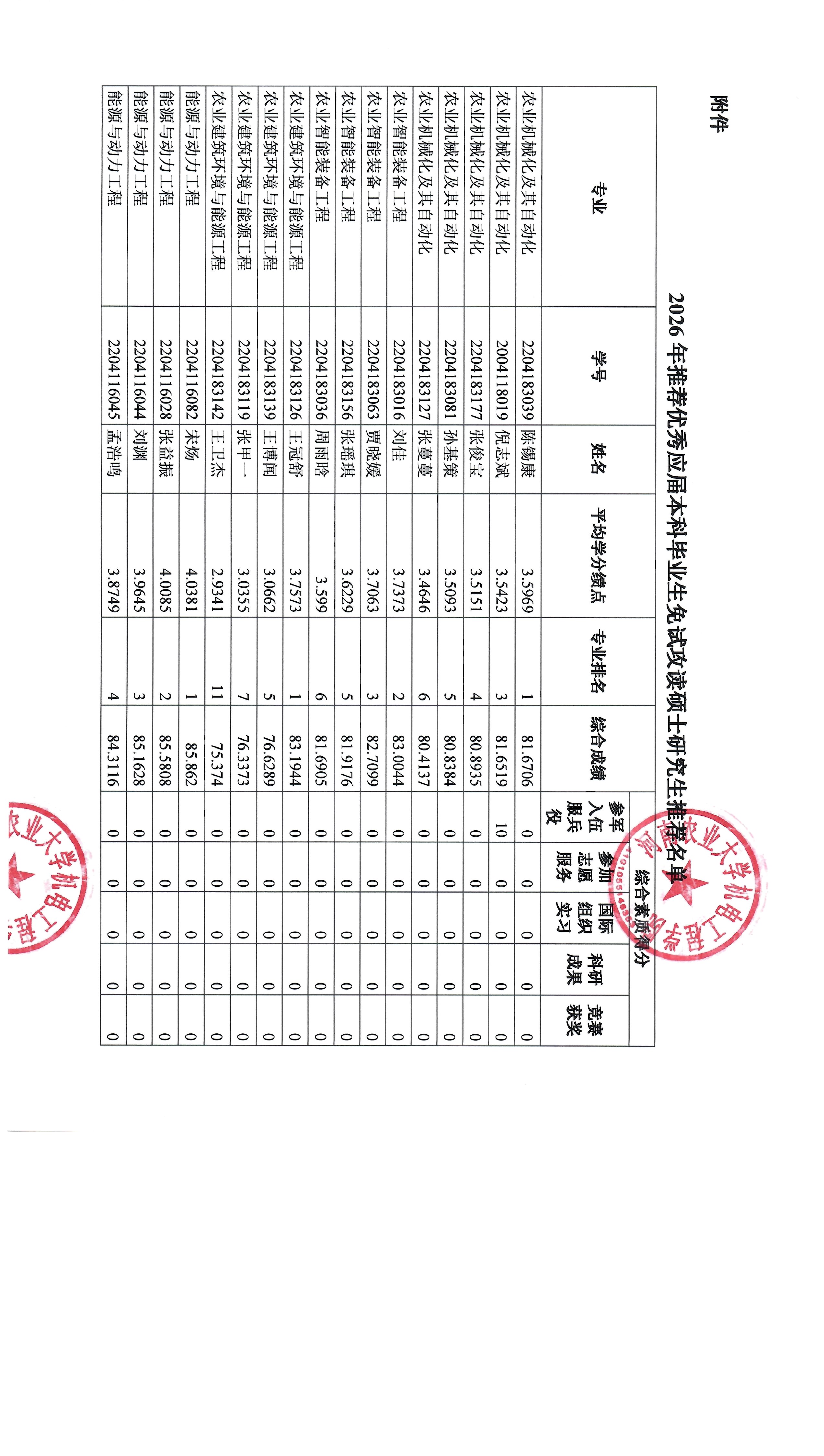 2026年推荐优秀应届本科毕业生免试攻读硕士研究生推荐公示