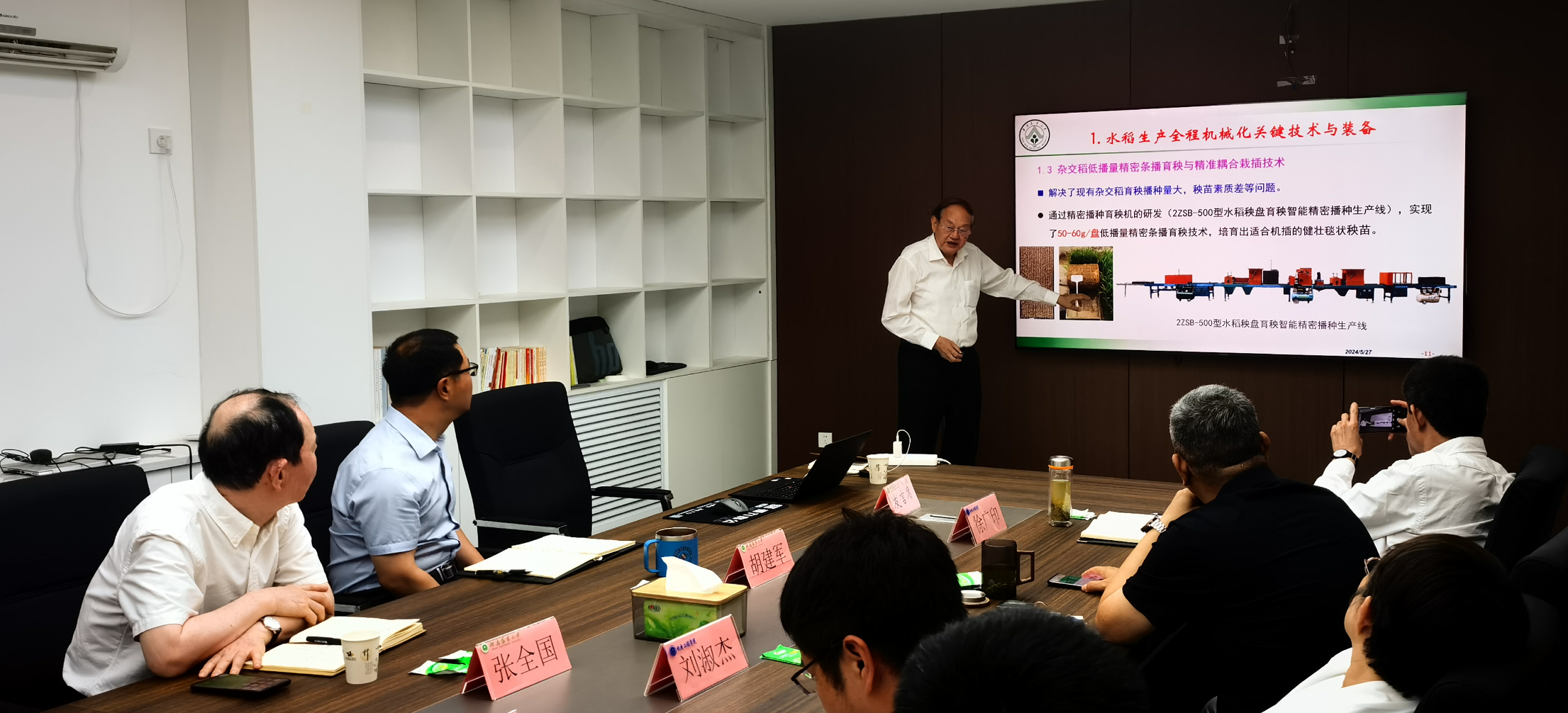 首先,院长胡建军从发展历程、师资队伍建设、教育教学、科学研究、人才培养、国际合作、社会服务等方面介绍了农业工程学科的建设现状与发展规划,就“双一流”创建方案和具体举措进行了说明。