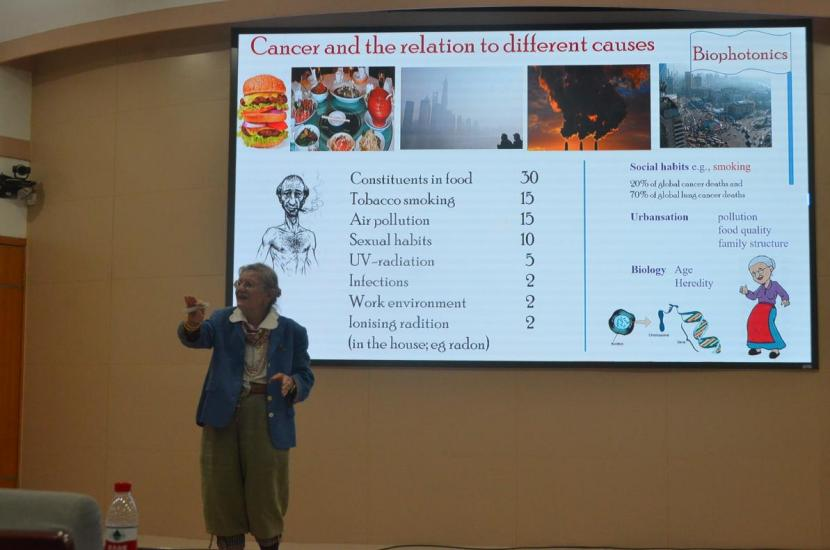 Katarina Svanberg教授 以《激光光谱学在生物医学领域的应用》为题,详细介绍了激光诱导荧光光谱、光动力疗法和散射介质中的气体吸收光谱技术在病变早期、鼻窦炎和中耳炎诊断方面的应用。