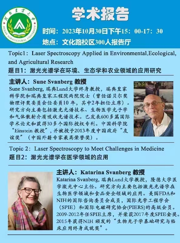 邀请瑞典皇家科学院和工程院两院院士、瑞典Lund大学教授Sune Svanberg和Katarina Svanberg教授在文化路校区300人报告厅开展了一场精彩的学术讲座,黄网