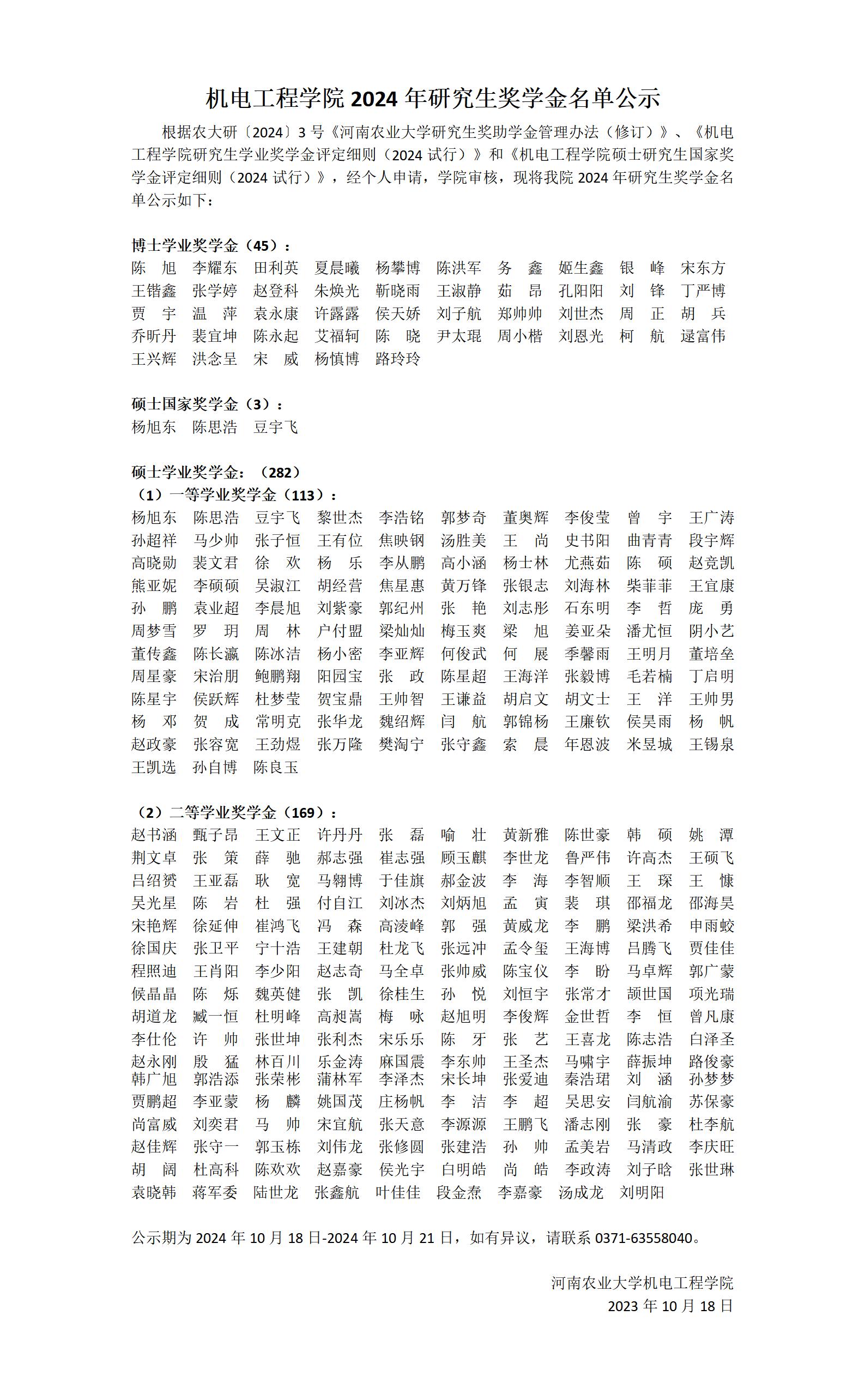 黄网 2024年研究生奖学金名单公示