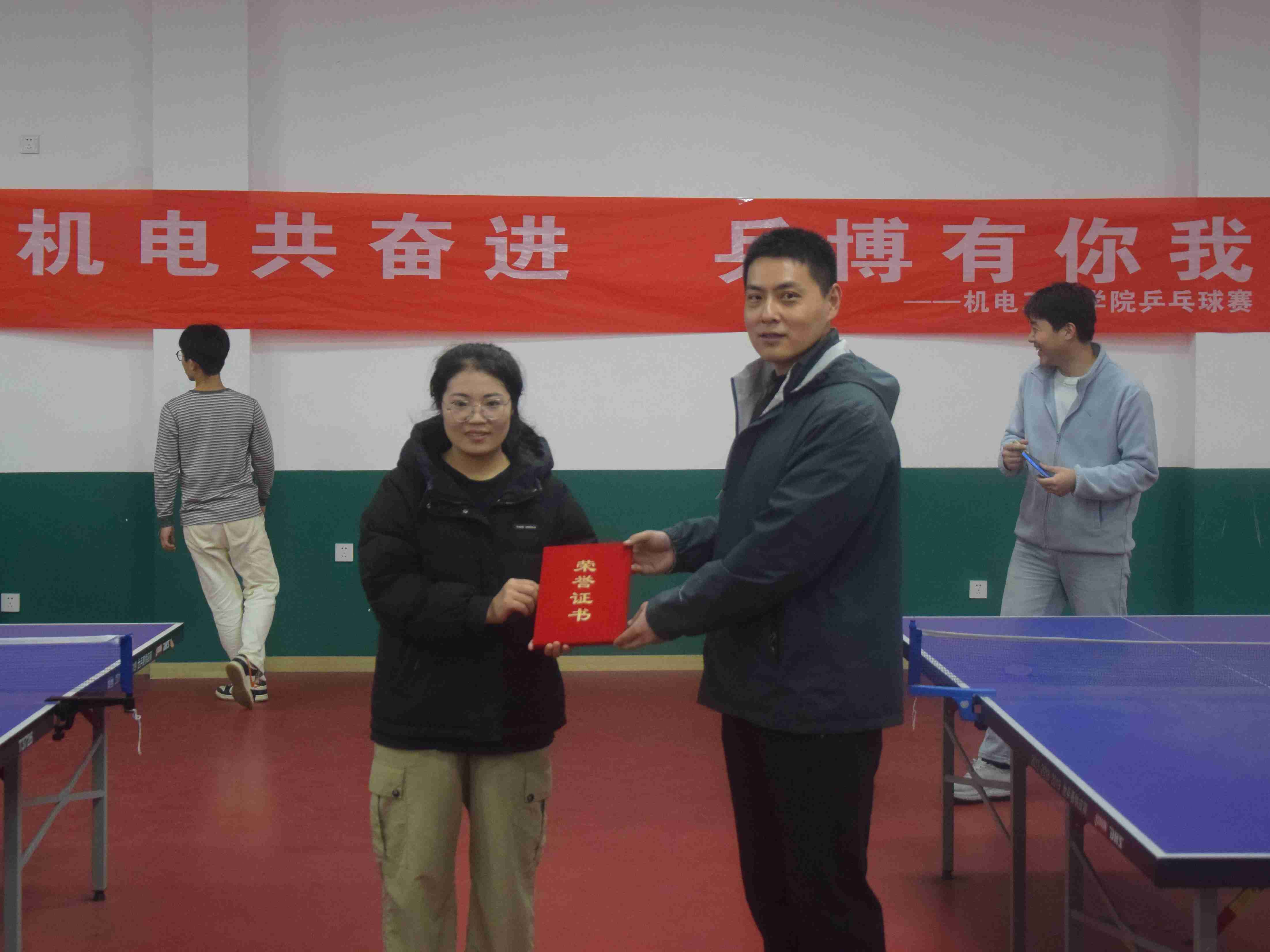 赛后,李锦老师为获奖选手颁发了证书,高度赞扬了所有参赛者的拼搏精神与体育素养。此次乒乓球赛不仅为选手们提供了展示球技的平台,也促进了研究生之间的交流与沟通,进一步丰富了体育文化生活,展现了参赛者们积极向上、勇于拼搏的精神风貌。(图/文:尚富威 审核:宋晶)。