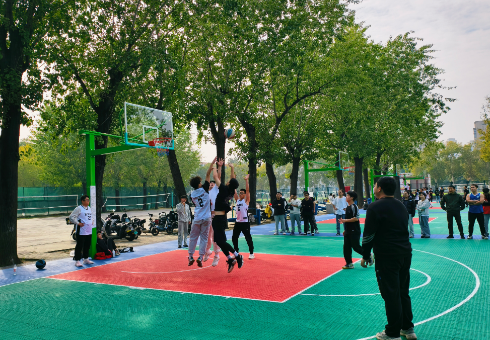 研究生篮球爱好者们踊跃报名,来自各年级共八支队伍同场竞技,院党委副书记宋晶、研究生辅导员李锦到场为大家加油鼓励。赛前,宋晶发表动员讲话,他强调,研究生群体要进一步加强锻炼、提升体能,摒弃“脆皮大学生”标签,他要求,同学们要践行每日锻炼计划,用运动锻造健康体魄与坚韧品格,为成为实验室里的科研先锋打好基础。