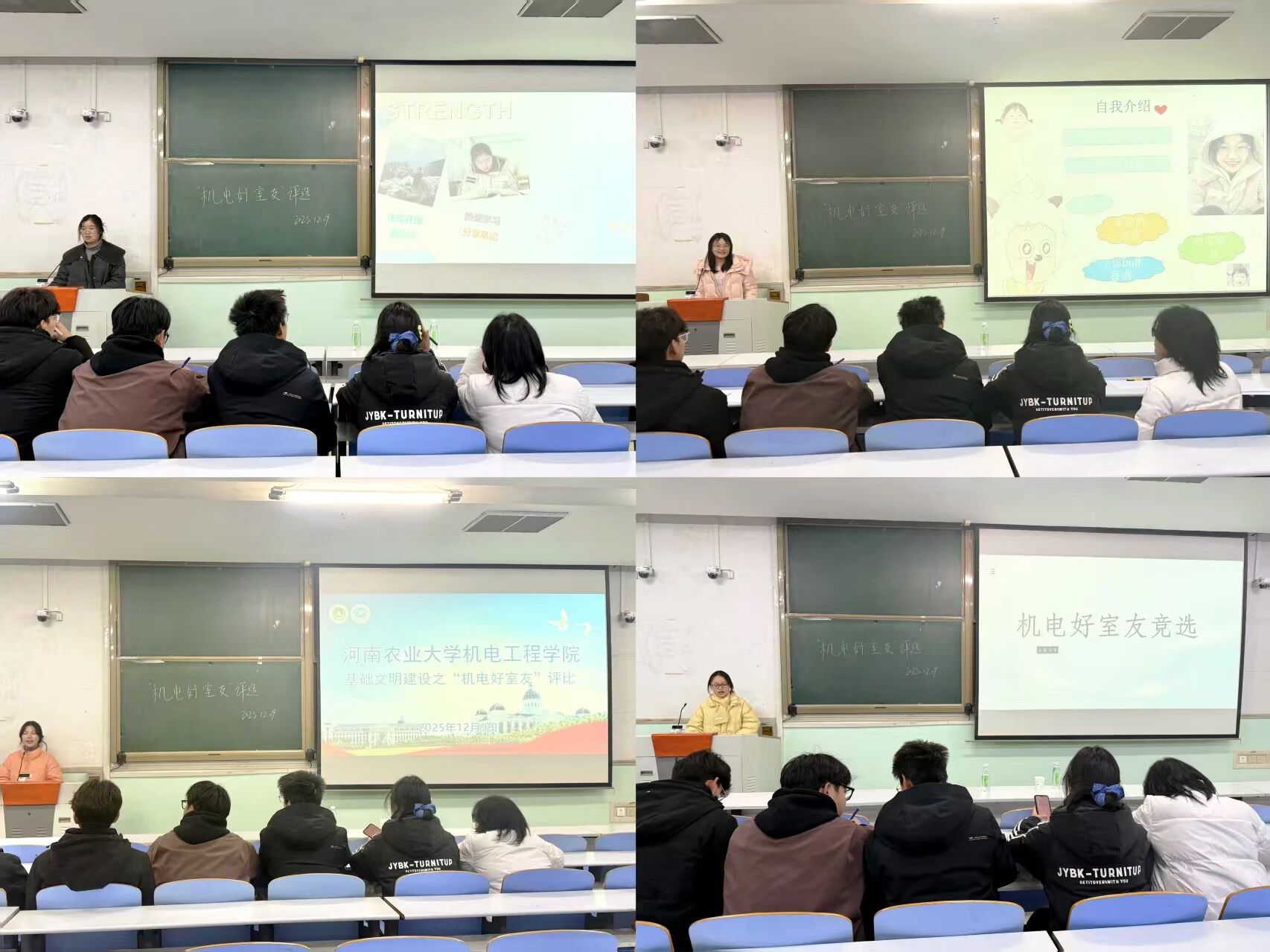 12月9日晚7点,黄网在文化路校区工程楼304、305、306教室同步开展“机电好室友、优秀寝室长、最美生活委员”评选活动,年级辅导员梁凯凯和学生代表参与此次评选。