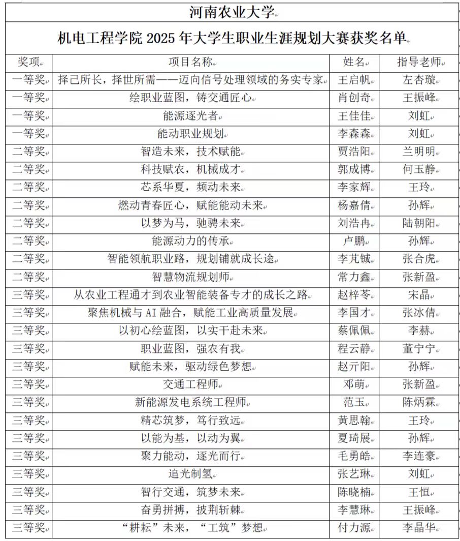 黄网 2025年大学生职业规划大赛获奖名单公示