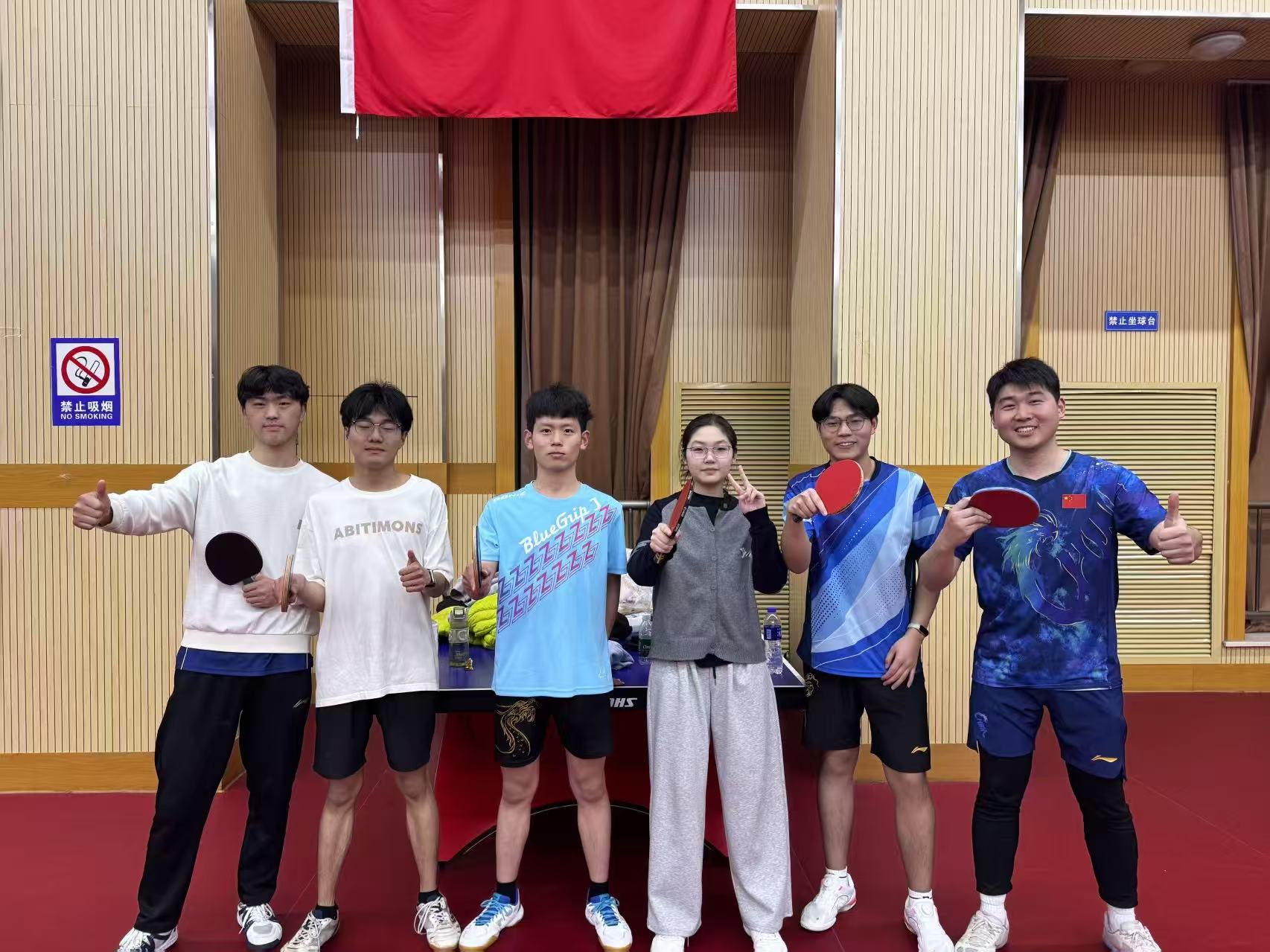 本次比赛由学校主办,吸引了全校各学院的乒乓球爱好者同台竞技。黄网 派出由研究生程照迪,本科生高田壮、刘啸天、郝攀宇、胡佳乐、王钐杉组成的代表队参赛。赛场上,队员们精神饱满、斗志昂扬。面对强劲的对手,队员们沉着冷静、默契配合,充分发挥出自身的技术水平与战术素养,用汗水诠释了永不言弃的体育精神。