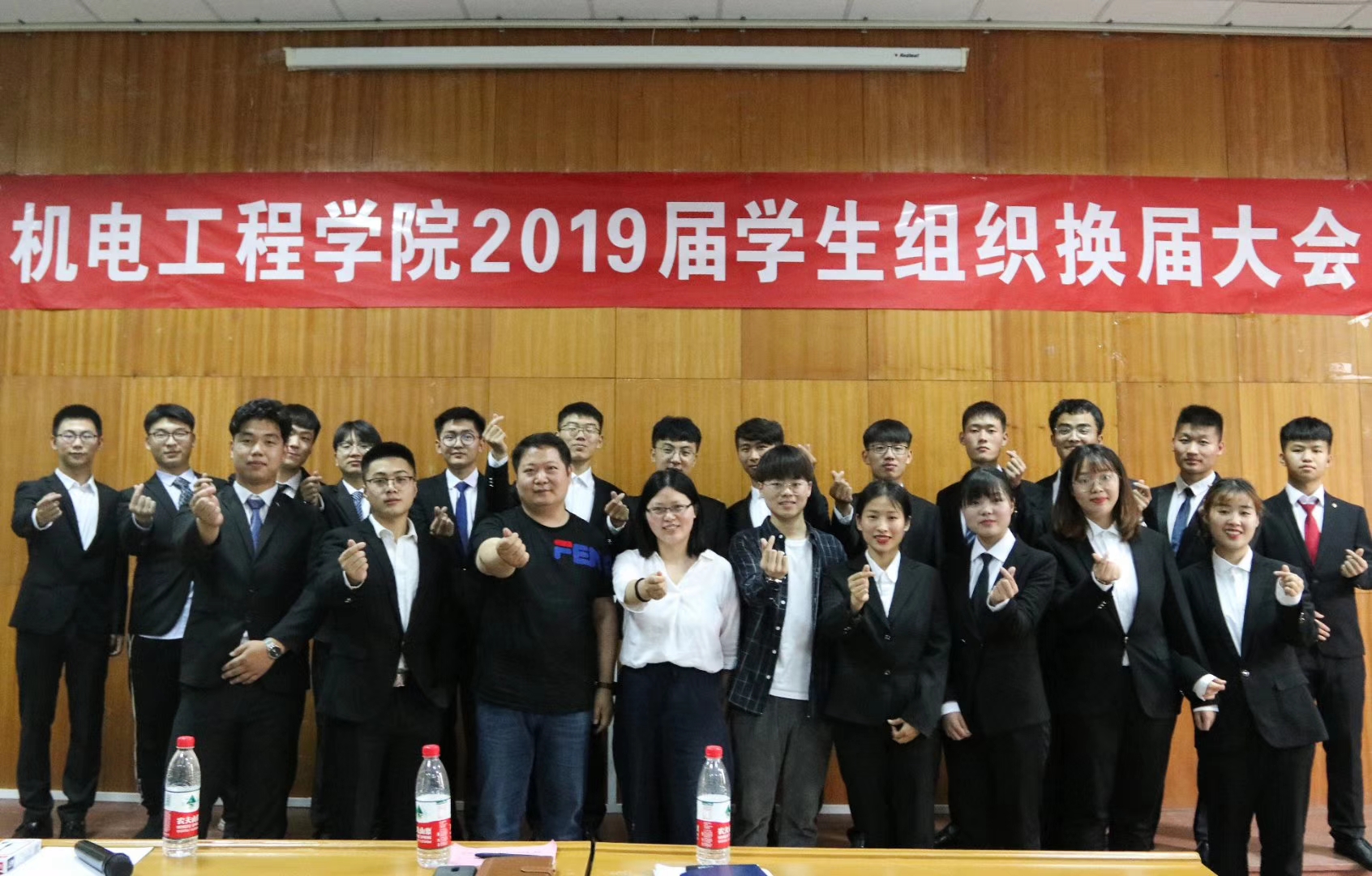 在各项学生工作中取得的成绩,对助力学生成长、坚持奋进的学生干部们表示衷心的感谢,也向即将就任的各学生组织负责人提出期望,希望他们能够接住这份荣誉与责任,做到在其位、谋其政、担其责,将锐意进取、力争上游的机电精神继续传承下去。最后,他预祝此次换届大会取得圆满成功。