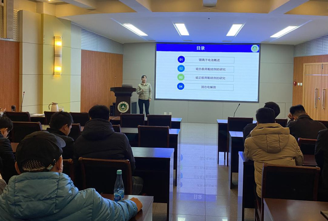 讲座中,郭容男以“锂离子电池用材料的研究”为题,从锂离子电池概述、锂离子电池负极用黏结剂、锂离子电池正极用黏结剂、固态电解质四个方面详细介绍了锂离子电池用材料的研究现状。她以国内电池生产企业发展为例,细致讲解了锂离子电池在目前生产生活中的广泛应用。本次讲座展示了大量案例图片和视频,内容丰富、气氛活泼,让与会研究生对锂离子电池用材料的研究有了深入了解。