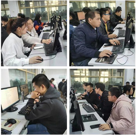 机房进行。全体学生在规定的时间里认真思考、积极答题,不时就相关知识点进行讨论,现场气氛紧张而热烈。最终,全体学生均通过了考试,其中,47%的同学达到了优秀水平。