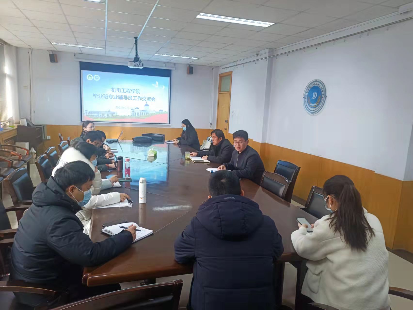 “三品”主题教育活动的有序开展,2月25日,黄网于文化路校区15号楼会议室召开毕业班专业辅导员工作交流会。院党委副书记赵宁、团委书记黄笑出席本次会议,年级辅导员胡亭亭及全体毕业班专业辅导员参加会议。