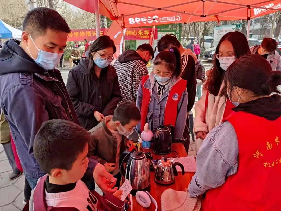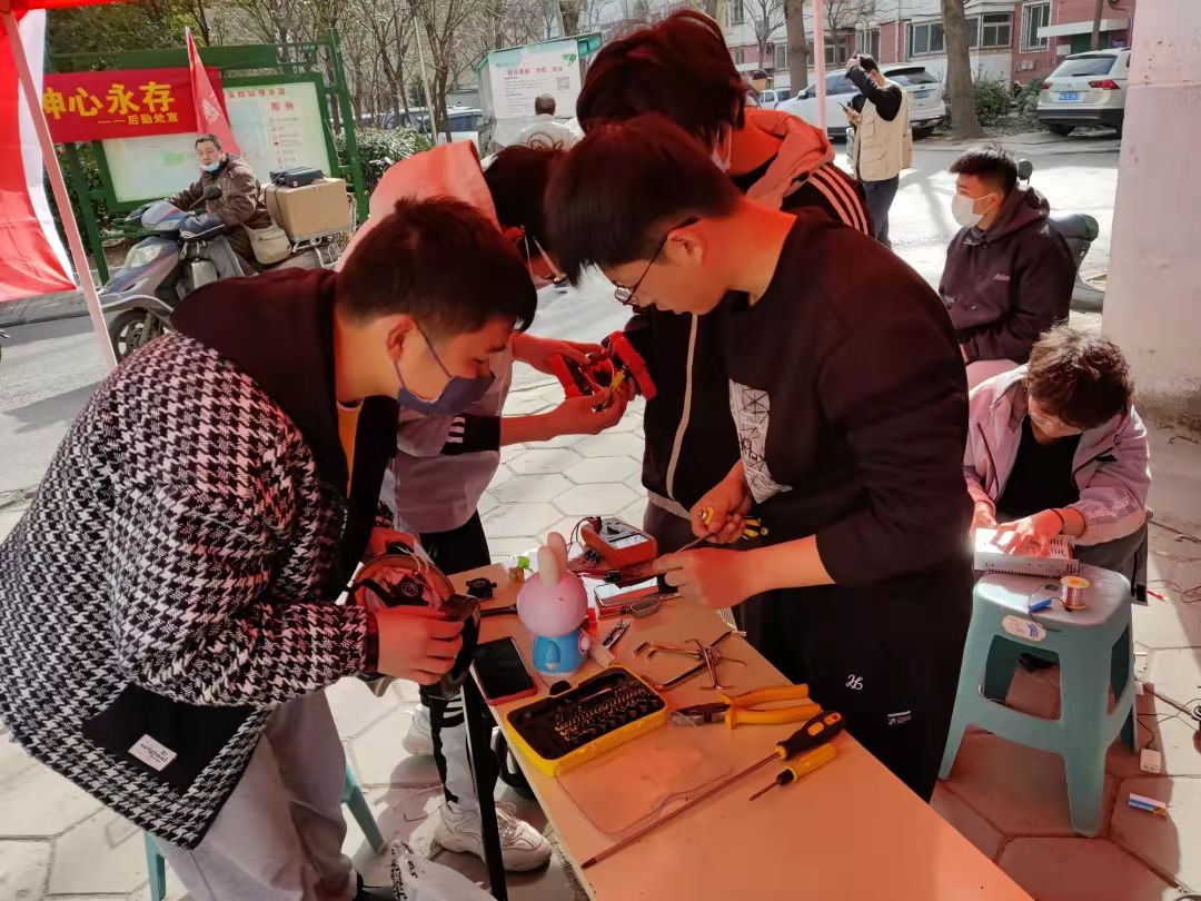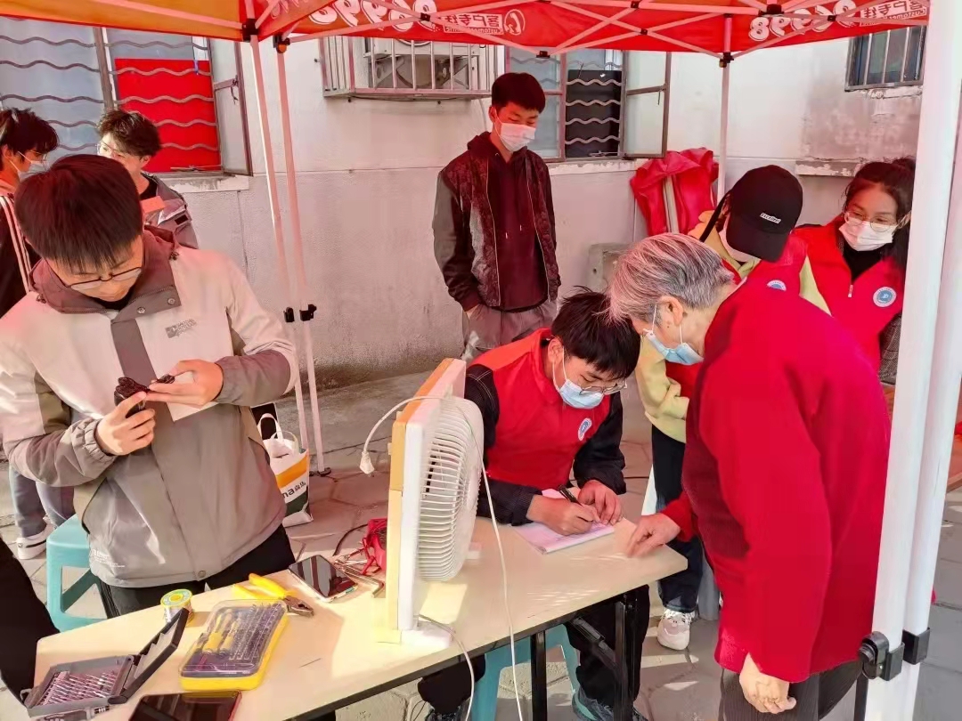 “三品”主题教育活动的落地落实,3月5日上午,黄网组织雷锋站志愿者协会、无线电协会成员于文化路校区家属院组织开展义务家电维修活动。院团委书记黄笑,辅导员王晓楠、徐佳亮来到现场指导活动。