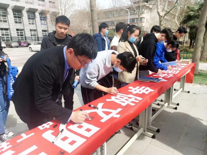 下达的各项工作任务;充分利用周周汇报本,及时做好班级日常情况的记录、汇报工作,提升班级管理水平;提醒班级同学严格遵守宿舍管理规定,做好安全隐患排查,尤其注意消防安全,防微杜渐,谨防火灾发生。会议结束后,全体成员前往工程楼南广场吴绍骙像前签字承诺,为维护校园安全贡献出自己的一份力量。