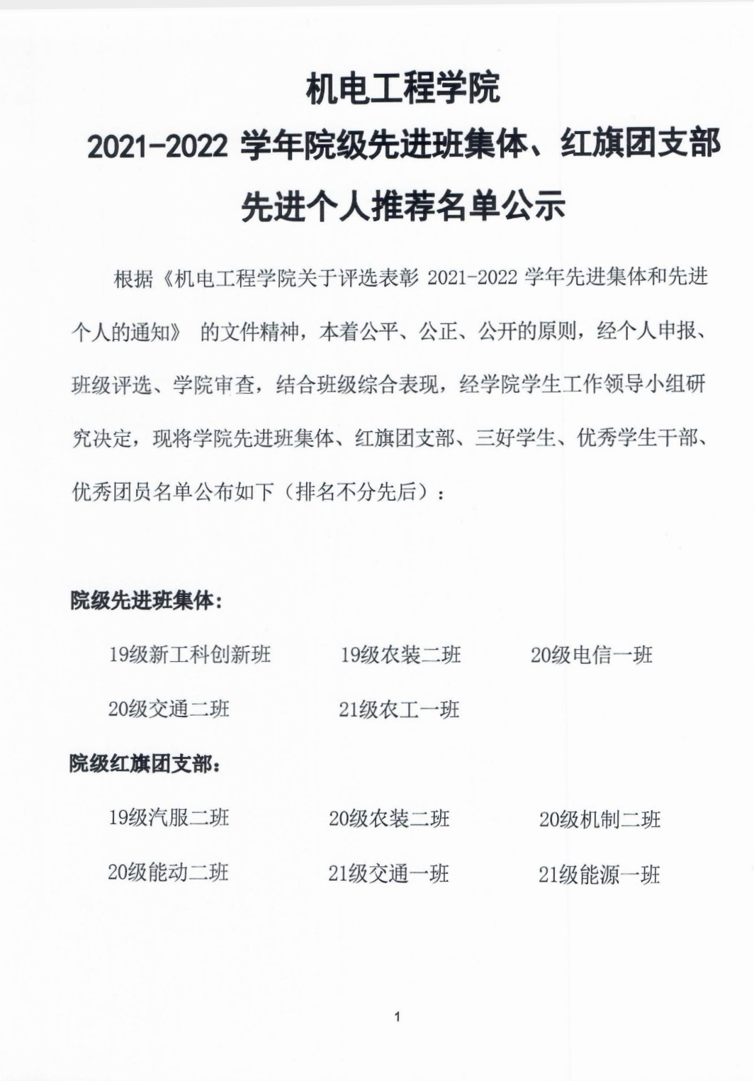 黄网 2021-2022学年院级先进班集体、红旗团支部、先进个人推荐名单公示